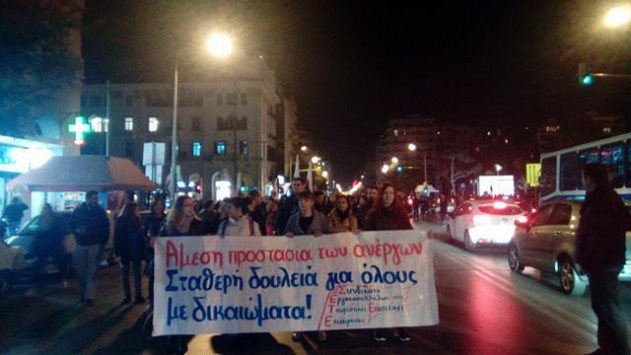 Συγκέντρωση διαμαρτυρίας για την ανεργία έκαναν σωματεία διαφόρων κλάδων που συσπειρώνονται στο ΠΑΜΕ, απόψε, στο άγαλμα του Βενιζέλου, στη Θεσσαλονίκη.